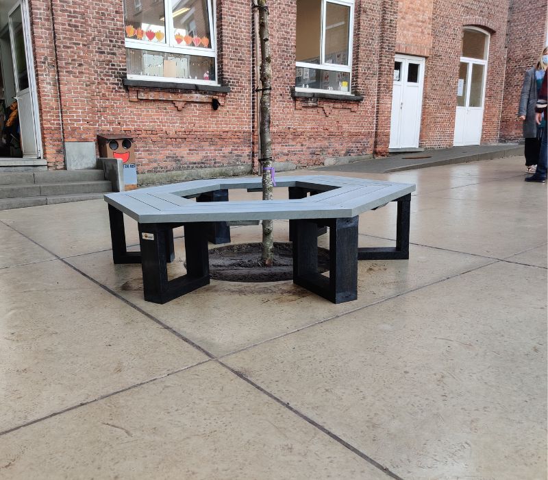 Creëer een sfeervolle en praktische zitplek rondom een boom met deze boombank, volledig gemaakt van 100% gerecycled kunststof. Met een ruime buiten diameter van 180 cm en een binnen diameter van 60 cm biedt deze bank voldoende zitruimte voor meerdere personen, perfect voor tuinen, parken en openbare ruimtes.