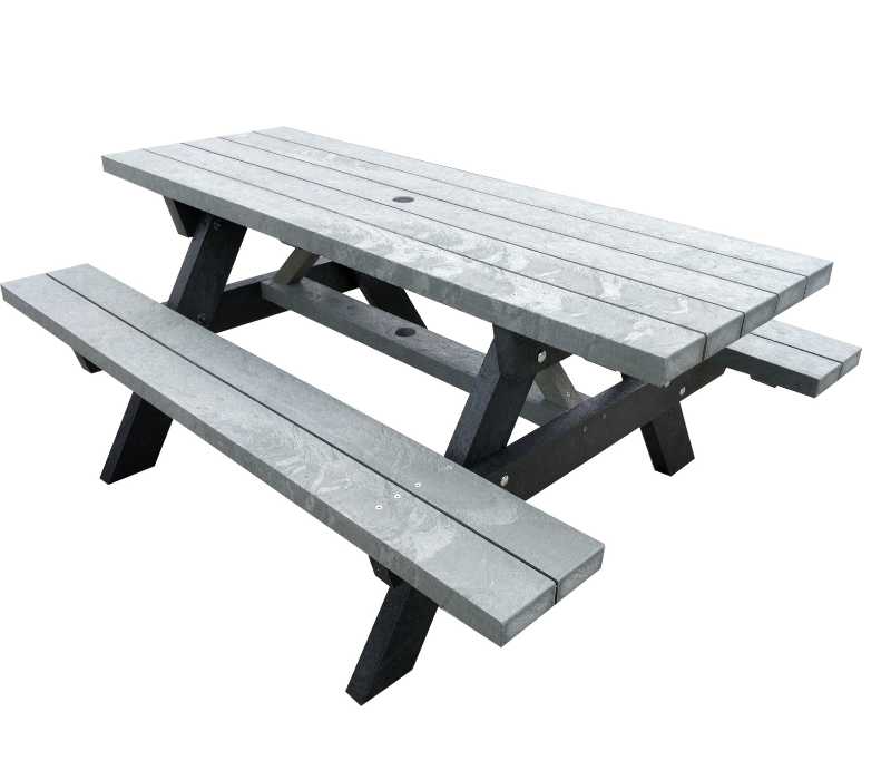Deze picknicktafel van 100% gerecycled kunststof is ontworpen voor maximale stevigheid en comfort. Met een lengte van 180 cm, een breedte van 135 cm en een zithoogte van 46 cm biedt deze tafel voldoende ruimte voor meerdere personen. Het geïntegreerde parasolgat zorgt ervoor dat je eenvoudig schaduw kunt creëren op zonnige dagen.